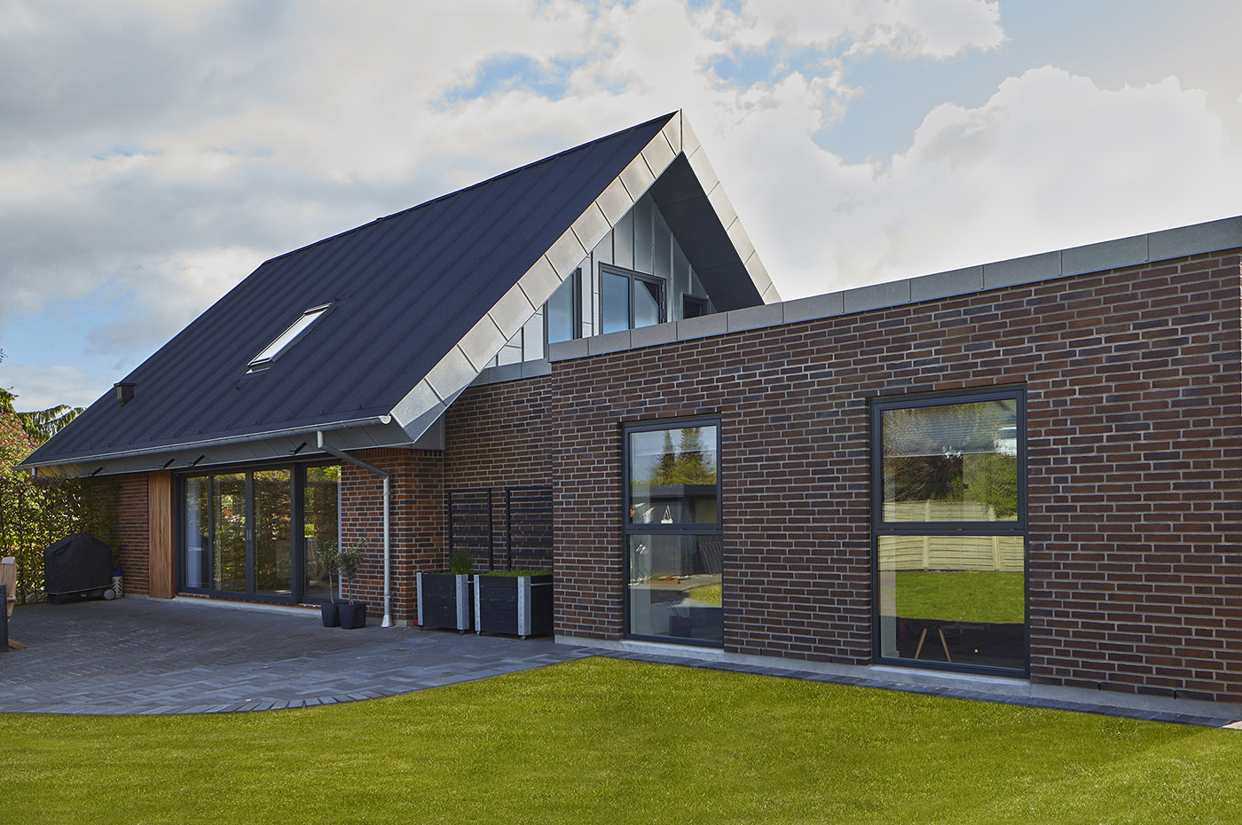 Denne flotte villa har gennemgået en gennemgribende modernisering inklusive tilbygning. Alle vinduer og døre er udskiftet til 3-lags Træ/Alu elementer i antracitgrå, og huset er åbnet op ud mod haven med en flot dobbelt hæveskydedør.