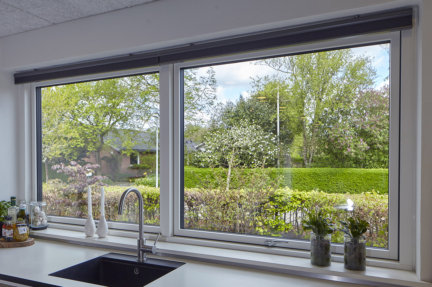 Farver: RAL 7016 Antracit grå udvendig (alu) og RAL9010 hvid indvendig (træ)